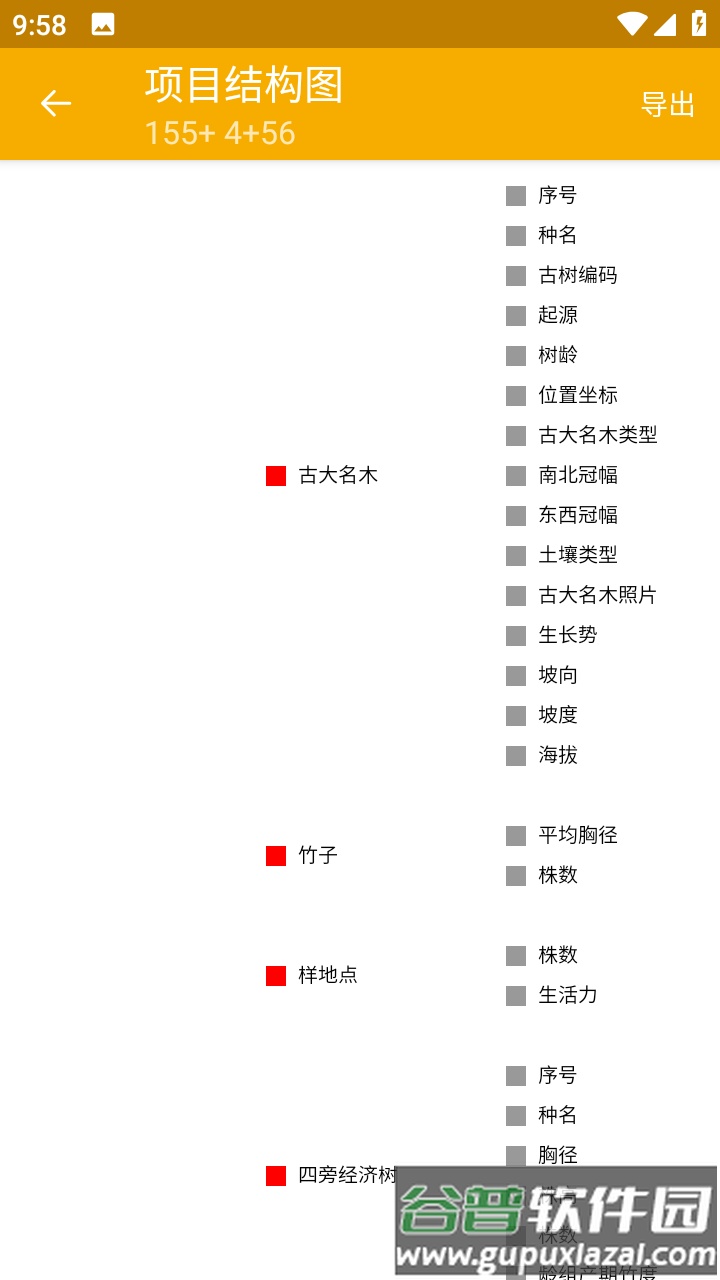项目模板以单根树状结构组织实体与属性,直观易懂;数据项提供历史输入列表,便于快速选择;采集表单直连工具箱,包含地图、公式计算器、计时器、指南针、坡度计、测距仪、测高器、角规测树、叶面积指数仪、叶面积仪、树木胸径测量、树木冠幅测量、植物识别等工具;自定义选项条目可为文本、音频、图片、视频或其组合,帮助调查员准确选择,保障数据质量。