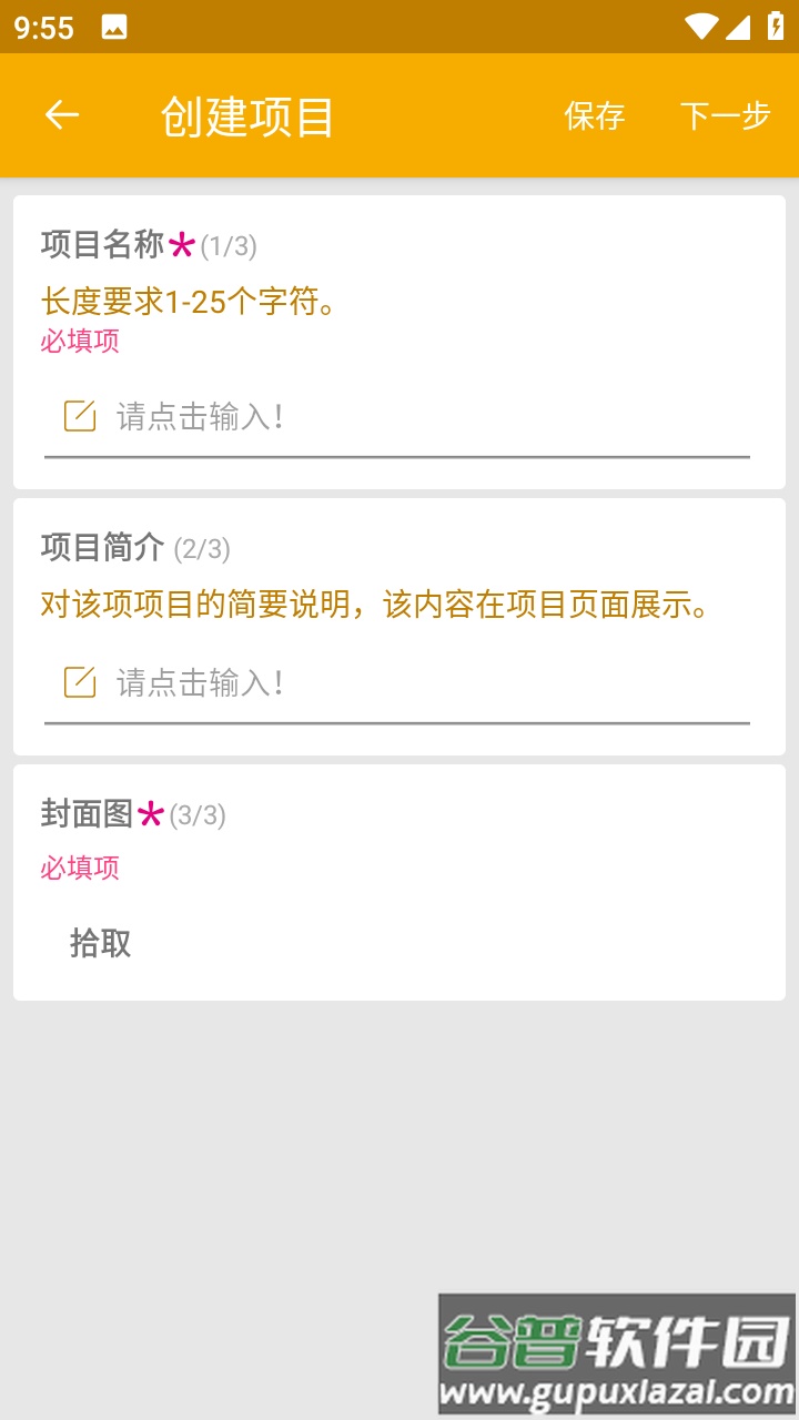 2、填写必填的项目名称、简介与封面图,点击下一步。
