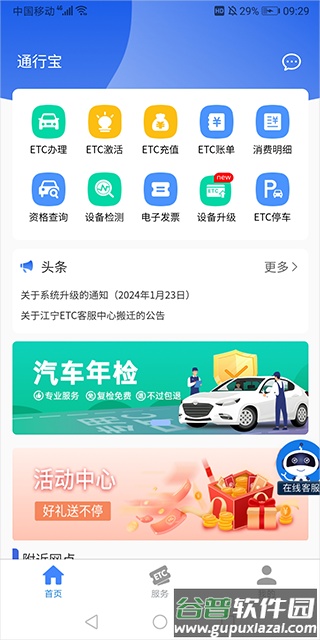 提供细致的服务指南,开启便捷出行生活;支持ETC停车快速支付,节省等待时间;实现在线充值与圈存功能;还能享受各类专属优惠活动。