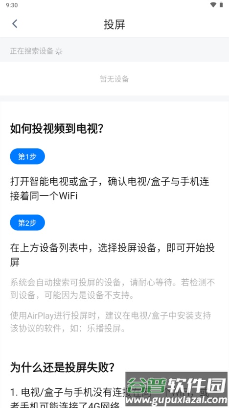 投屏失败可能由以下原因造成: