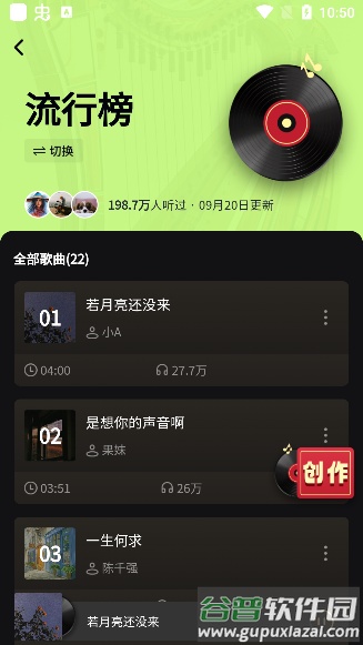 2、点击进入感兴趣的榜单,可以浏览其中的歌曲列表;