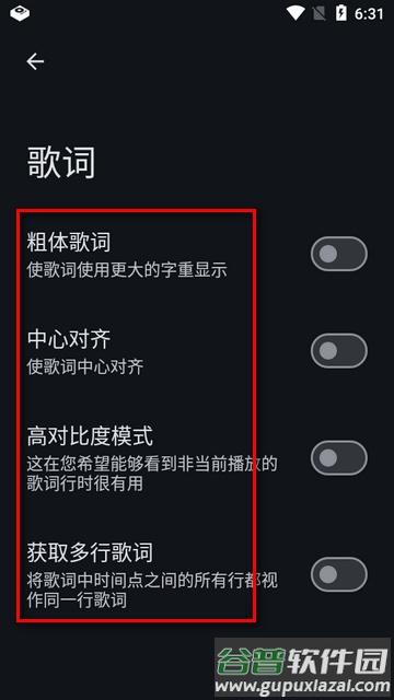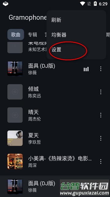 如需调整歌词样式,请点击右上角的菜单按钮,选择设置选项。