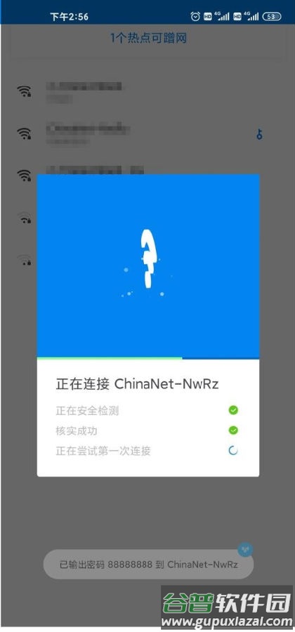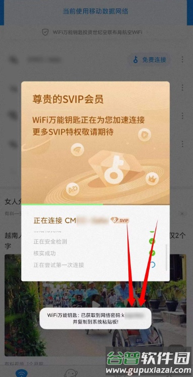 3、连接成功后,软件会弹出提示框,其中包含已获取的WiFi密码,可以直接复制使用。