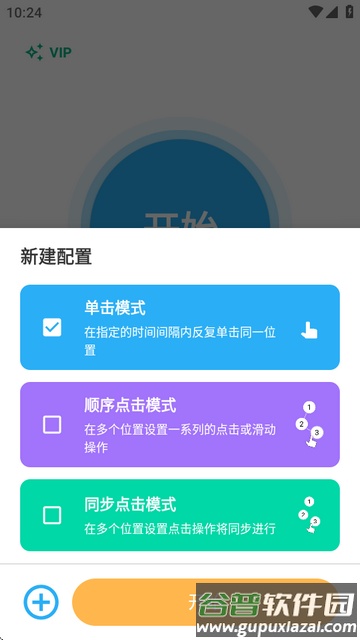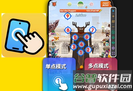 1、单击模式:在固定时间间隔内,重复点击屏幕同一坐标位置。