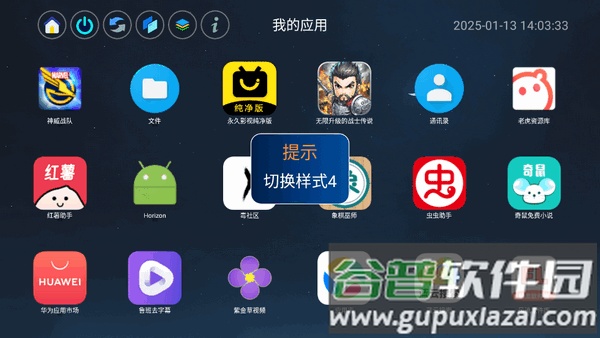 软件内置了八种不同的图标布局样式,点击界面中黄色箭头指示的功能按钮即可进行切换,其中样式4能够以最大的图标进行显示。