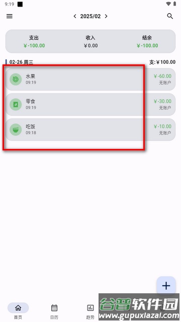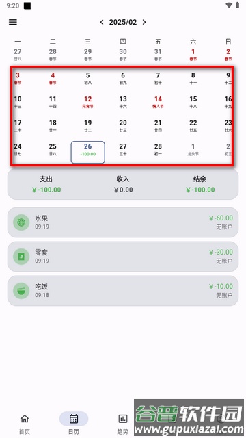 5、点击日历功能,能够查看具体日期下的花费详情。