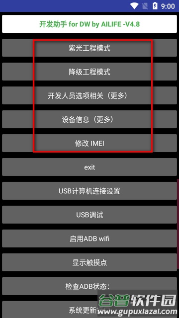 紫光工程模式;降级工程模式;开发人员选项相关设置;USB计算机连接配置;USB调试开关;启用ADB wifi连接;显示屏幕触摸点;检查ADB当前状态;系统更新接口调用;通过Root权限强制开启adb;强制禁用Android Go模式(需Root);查看设备详细信息;查阅硬件配置信息;使用参数修改工具;进行型号修改;查看真实内存容量;识别假内存信息;检查硬件配件详情;获取完整软件信息;查看Google Play的假信息;修改设备IMEI号码。