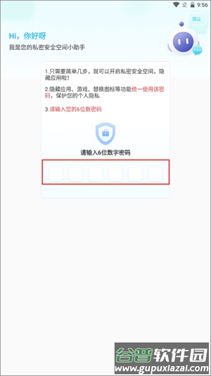 1、首次启动软件隐藏大师,需要先设置一个六位数字密码,连续输入两次确认后即可进入下一界面。