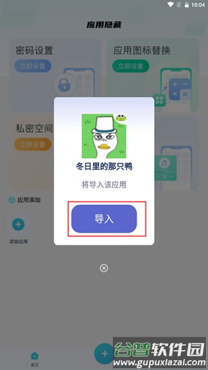 5、选定图标后,通过下方应用添加功能导入需要隐藏的游戏或软件,点击“导入”完成添加。