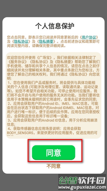 1、在本站下载安装最新版广场宝应用,首次打开需要同意相关用户协议。