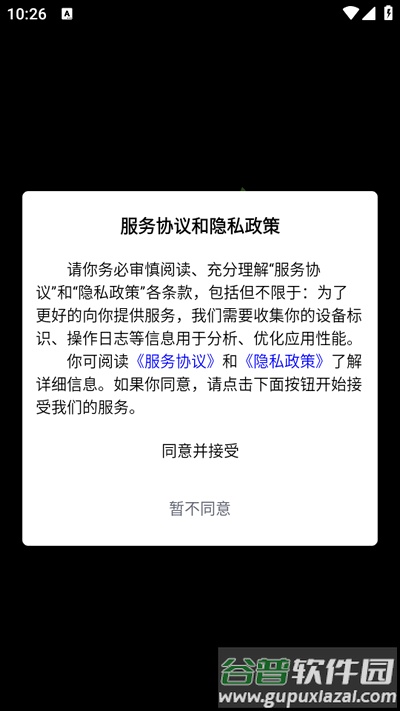 1、启动应用后,仔细阅读并同意相关用户协议。