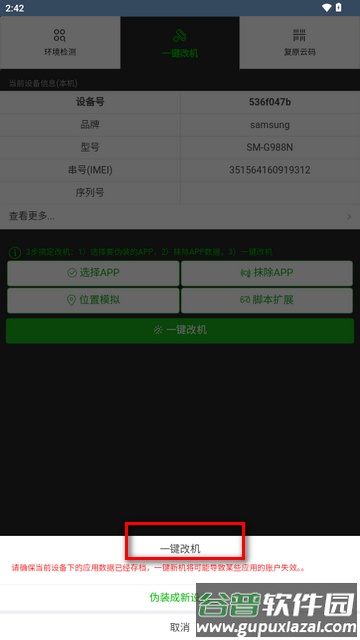 点击一键改机按钮即可完成对该应用关联设备信息的全面修改。