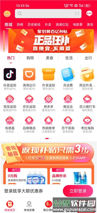 1、网购返现:通过平台前往淘宝、京东、拼多多、唯品会、苏宁易购等电商购物,可获得现金返利;