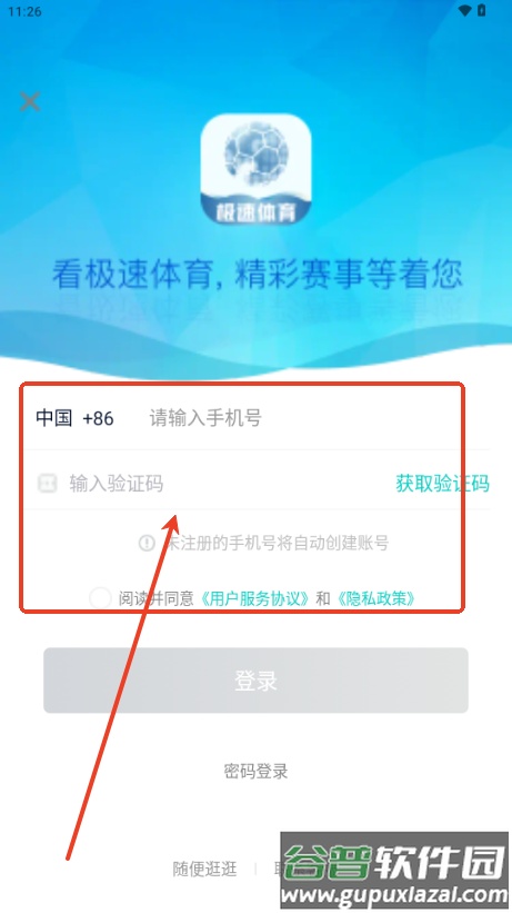 3、在登录页面选择手机号码登录,输入号码获取验证码;