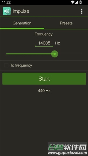 2、左右滑动界面中的调节图标可改变音频赫兹数值,点击开始按钮即可进行测试;