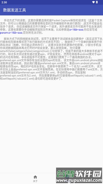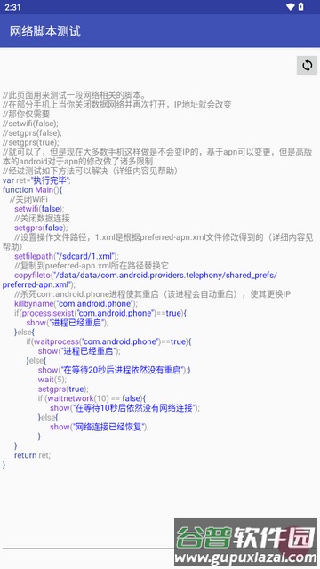 脚本模式下的网络脚本测试主要用于验证自动更换IP功能;此处提供了一个基础脚本供修改后测试,实际使用时可能需要调整;手机更换IP的原理因机型而异,部分旧款手机关闭再开启移动数据即可变更IP,对应脚本语句简化为setwifi(false);setgprs(false);setgprs(true);但多数新款手机需通过变更APN实现IP变化;高版本安卓系统限制了非系统应用修改APN,可采用间接方法:preferred-apn.xml文件保存当前APN设置,由系统进程读取;覆盖该文件并重启相关进程即可触发APN变更;脚本中引用的1.xml文件由preferred-apn.xml复制而来;实际应用时需要准备两个XML文件,复制当前preferred-apn.xml为1.xml并修改APN,再复制一份为2.xml;更换IP时在脚本中交替使用setfilepath(/sdcard/1.xml);与setfilepath(/sdcard/2.xml);语句即可连续切换IP。