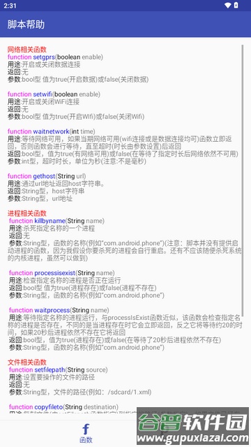 5、脚本帮助页面提供了函数与属性的详细参考信息。
