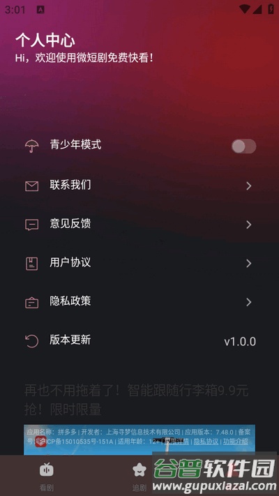 3、点击我的进入个人中心,在这里可以找到并开启青少年保护模式。