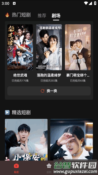 1、启动软件后进入主页面,点击剧场栏目,这里分类展示了大量短剧可供选择;