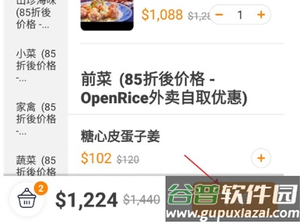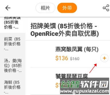 4、看到喜欢的食物后,点击菜品旁的加号按钮添加到购物车。