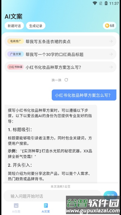 智能文案:辅助内容创作,一键生成吸引用户的文案素材;