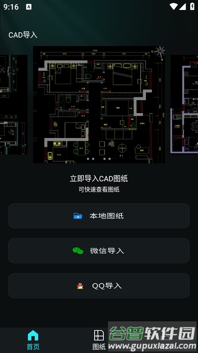 该应用集快速看图、文字标注与布局切换于一体,同时支持PDF文件浏览,便于团队协作查看图纸;用户可通过微信、QQ或本地存储等多种方式直接导入CAD图纸文件。