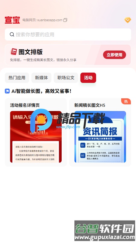 宣宝app是一款面向工作场景的智能办公工具,它融合了AI写作与图文排版两大核心能力。该软件内置超过六十种写作辅助应用,并拥有十万余款设计模板,能够帮助用户高效完成各类文档的撰写与美化任务。无论是日常的工作记录、公众号内容发布,还是会议纪要整理与公文起草,它都能提供有力的支持。
