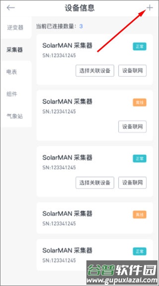 7、添加完成后,即可在该电站的设备信息页面查看采集器相关数据。