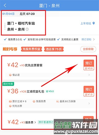 4. 选择您要购买的车票或套餐,若无其他需求,通常选择普通汽车票即可。