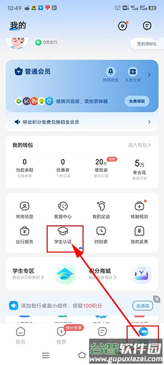 登录后,在个人中心页面找到并点击“学生认证”。