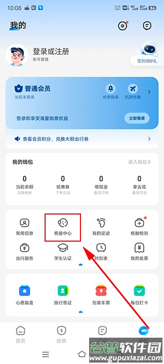 2. 在页面中找到并点击“客服中心”。