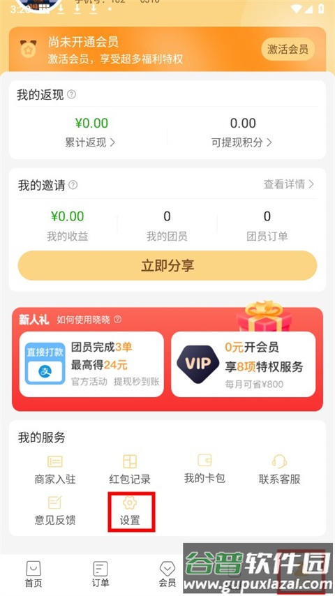 1、打开晓晓优选APP,进入“我的”页面,找到设置选项。