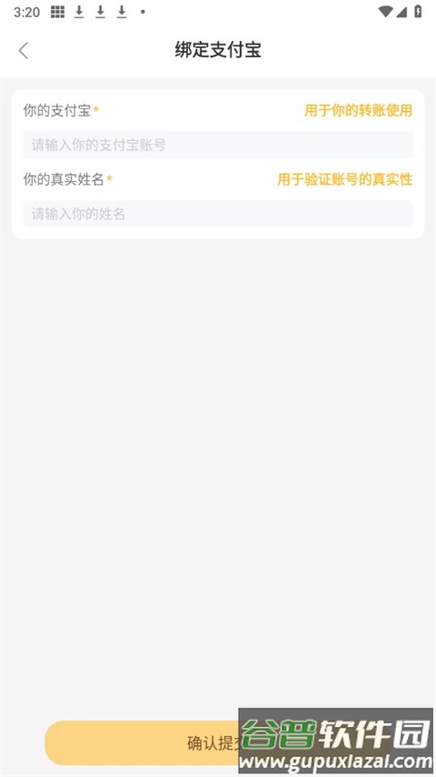 3、按照提示填写姓名与支付宝账号,完成绑定操作。
