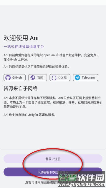 2、游客模式可使用大部分功能,如需管理个人追番进度,则需注册账号并登录。