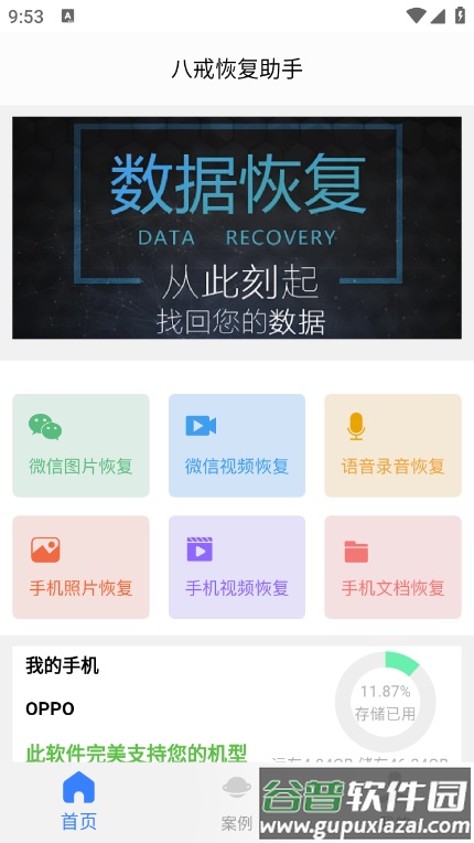 1. 在本页面下载八戒恢复助手app,安装后打开进入主界面。