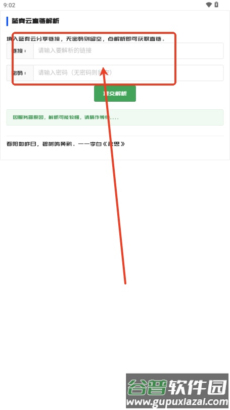 3、在输入框内粘贴链接,若有提取密码则一并填入;