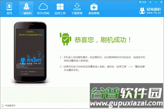 5、当软件显示刷机成功,手机将自动重启;首次开机时间较长,请耐心等待进入新系统。