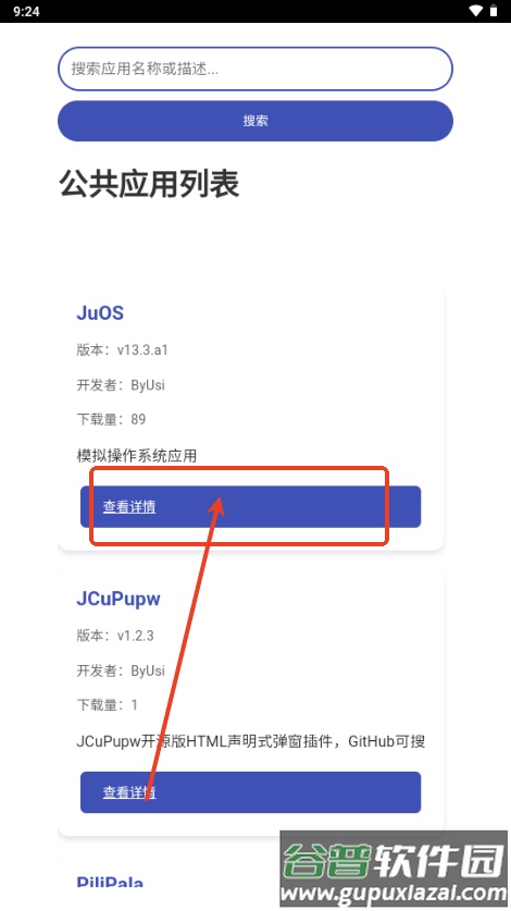 这款名为欢愉应用市场的软件由ByUsi开发,其核心功能是提供应用程序的下载服务;同时支持用户上传新的应用资源,并配备了搜索应用的功能模块。