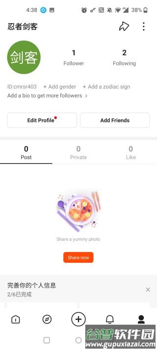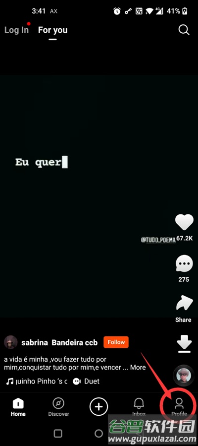 1、完成快手海外版的下载与安装后,点击界面右下角的“profile”选项。