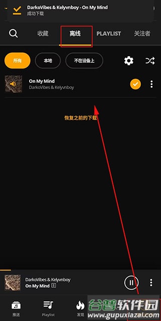 4. 随后进入“我的媒体库”中的“离线”栏目,即可查看刚刚下载缓存的音乐。