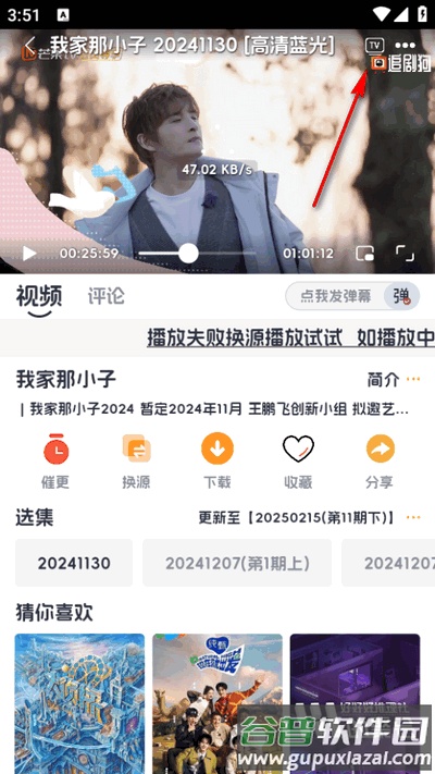 2、点击右上角的TV投屏按钮,即可将内容投射到电视屏幕。