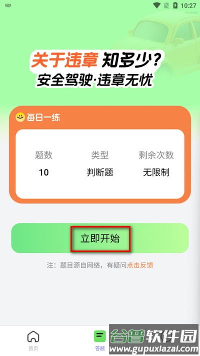 1、首先打开软件进入主页面,点击下方的答题功能入口。