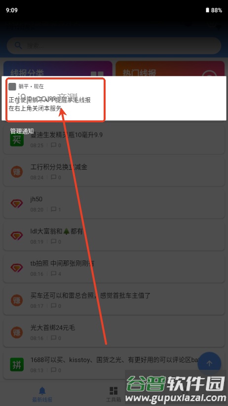4、之后下拉手机状态栏,就能及时接收到推送的最新线报内容。