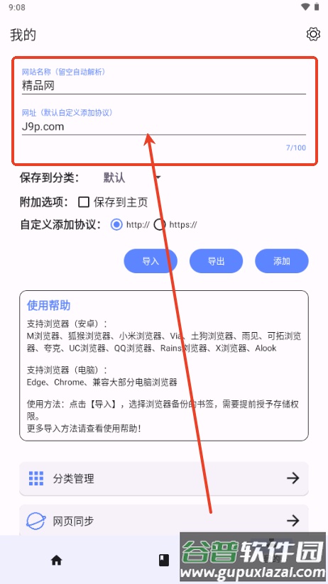 在相应页面中,输入计划导入的网页地址及其对应的名称。