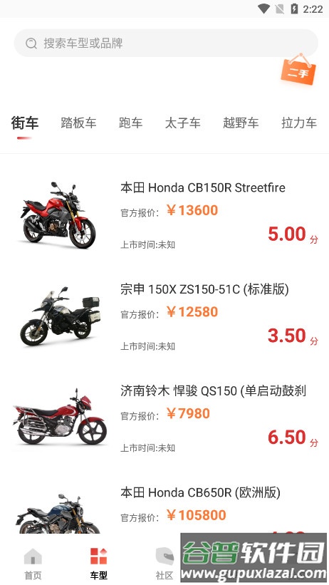 3、车型页面列出各种摩托车的最新报价,2025年市场价格变动会实时同步,方便随时掌握行情。