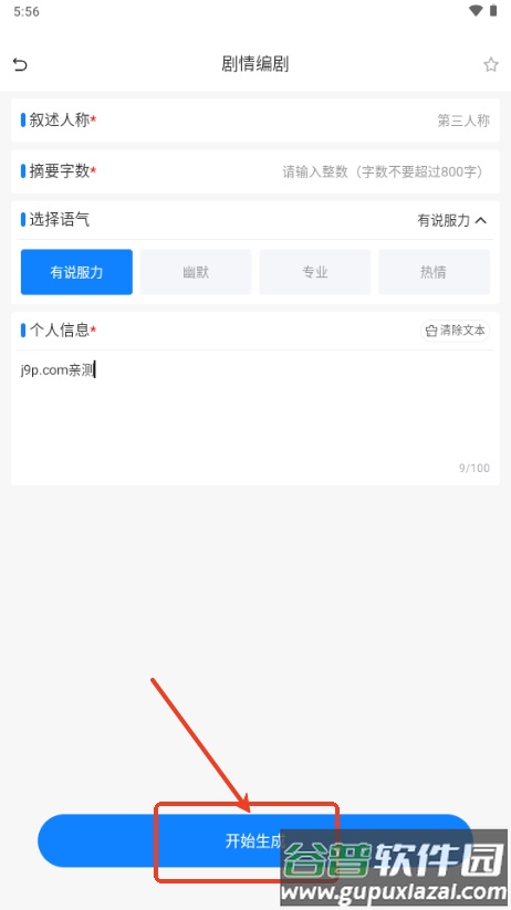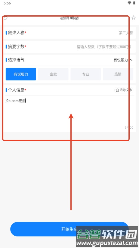 2、在输入框中填写您的需求描述或关键词,随后点击开始生成按钮。