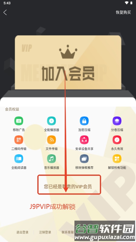 3、找到会员权益页面,此处会显示会员功能已成功激活;