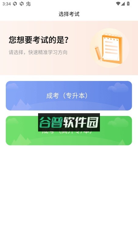 1、打开软件后,首先选择报考层次,例如高升本或专升本