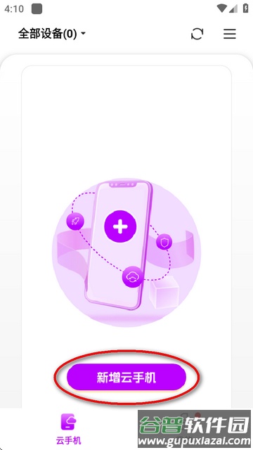 4、进入软件主界面,点击新增云手机功能选项;