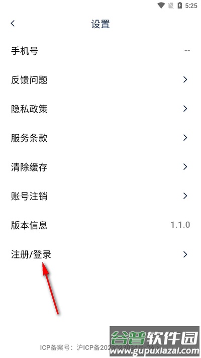 2、在设置菜单中找到并点击“注册/登录”选项;